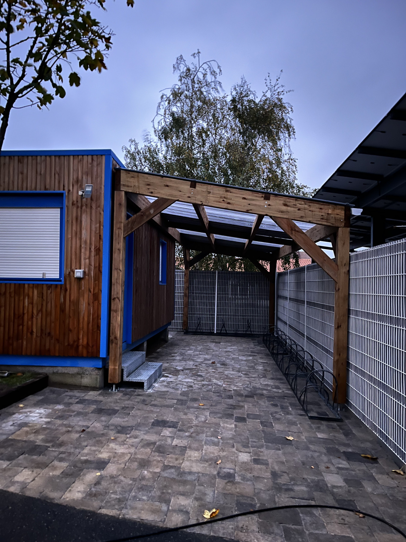 Nous avons participer au financement et posé une clôture ainsi qu'un abri à vélos sur mesure en bois dans une école.